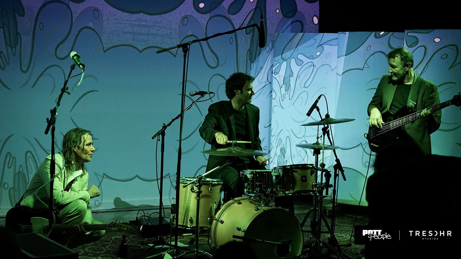 Es war schon etwas ganz Besonderes, etwas Außergewöhnliches, was sich da am 14. November in unseren TRESOHR STUDIOS abspielte. Sichtlich beeindruckt zeigten sich die 50 Gäste, die exklusiv an der Aufnahmesession mit THE ALMOST THREE feat. Hendrik Dorgathen teilnehmen durften und Zeuge einer audio-visuellen Performance der Extraklasse wurden. Während Frontmann Martin „Ludi“ Ettrich den Blues mit seinen Gitarrensoli an seine Grenzen trieb, entfalteten sich auf den Bildflächen um die Band herum spektakuläre Animationen des international renommierten Künstlers Hendrik Dorgathen. Ganz großes Kino.